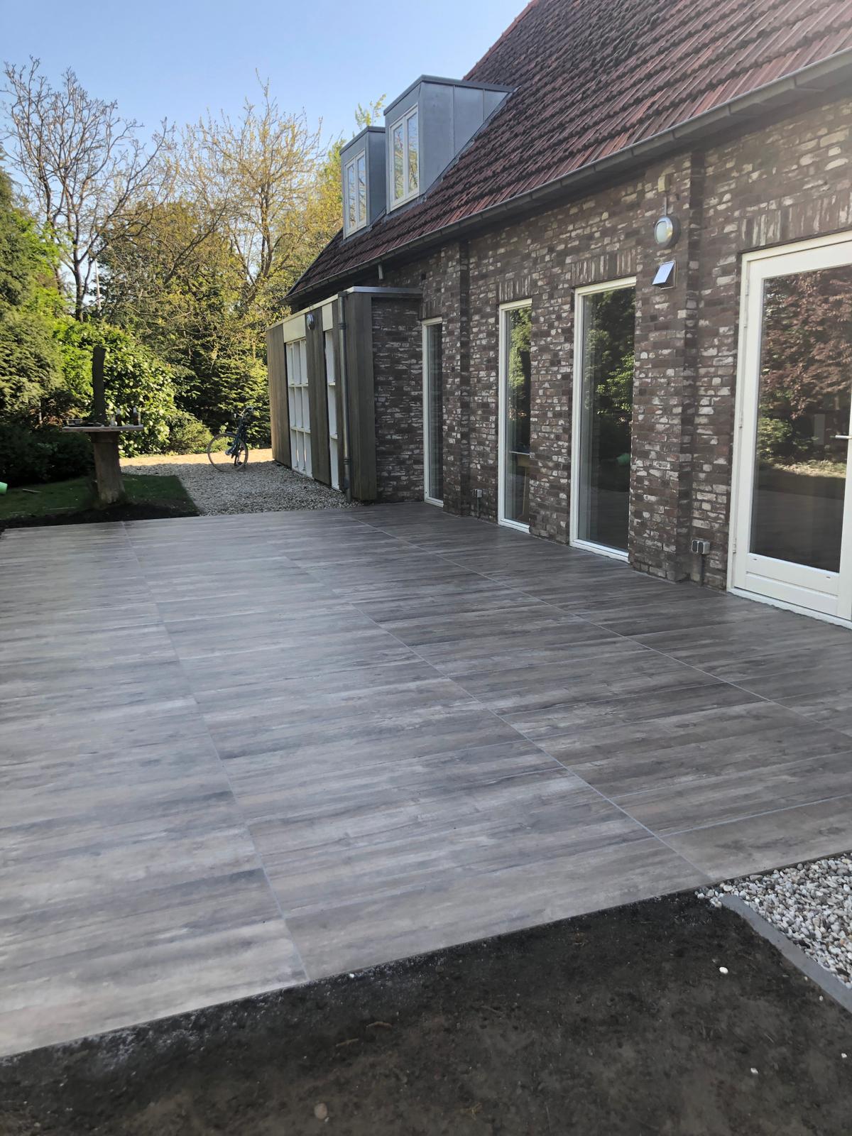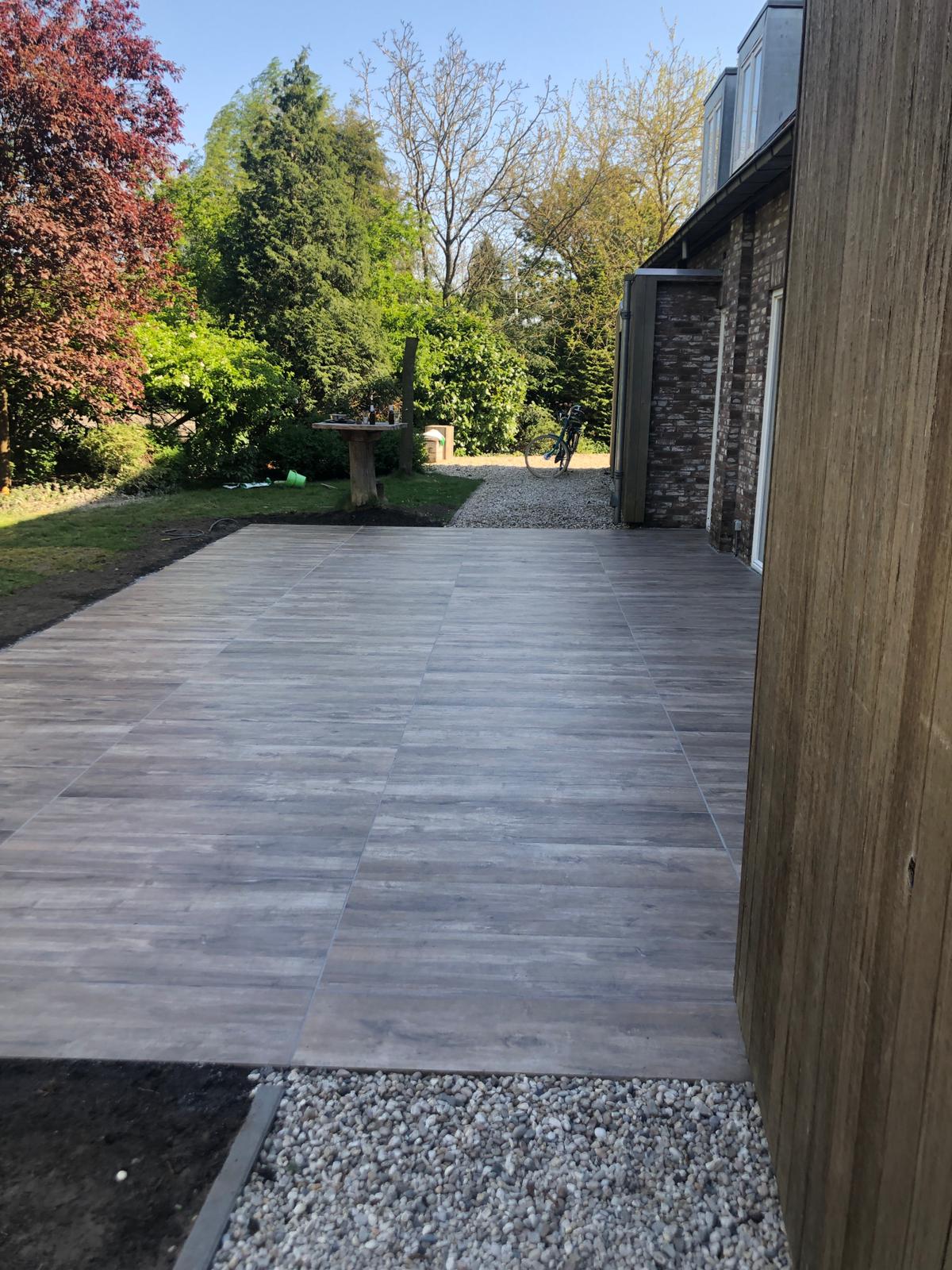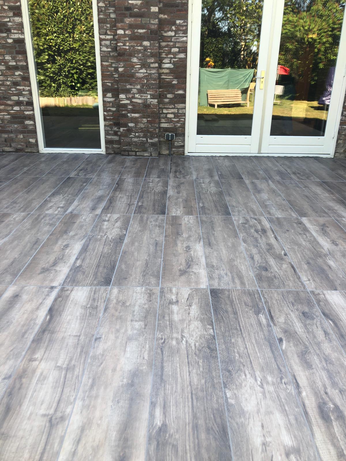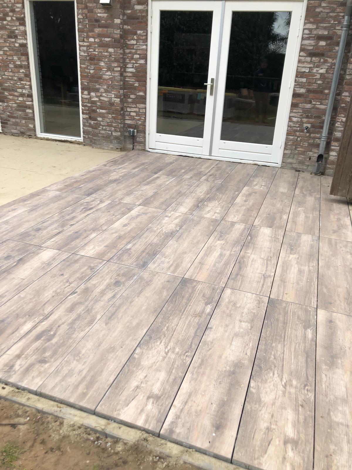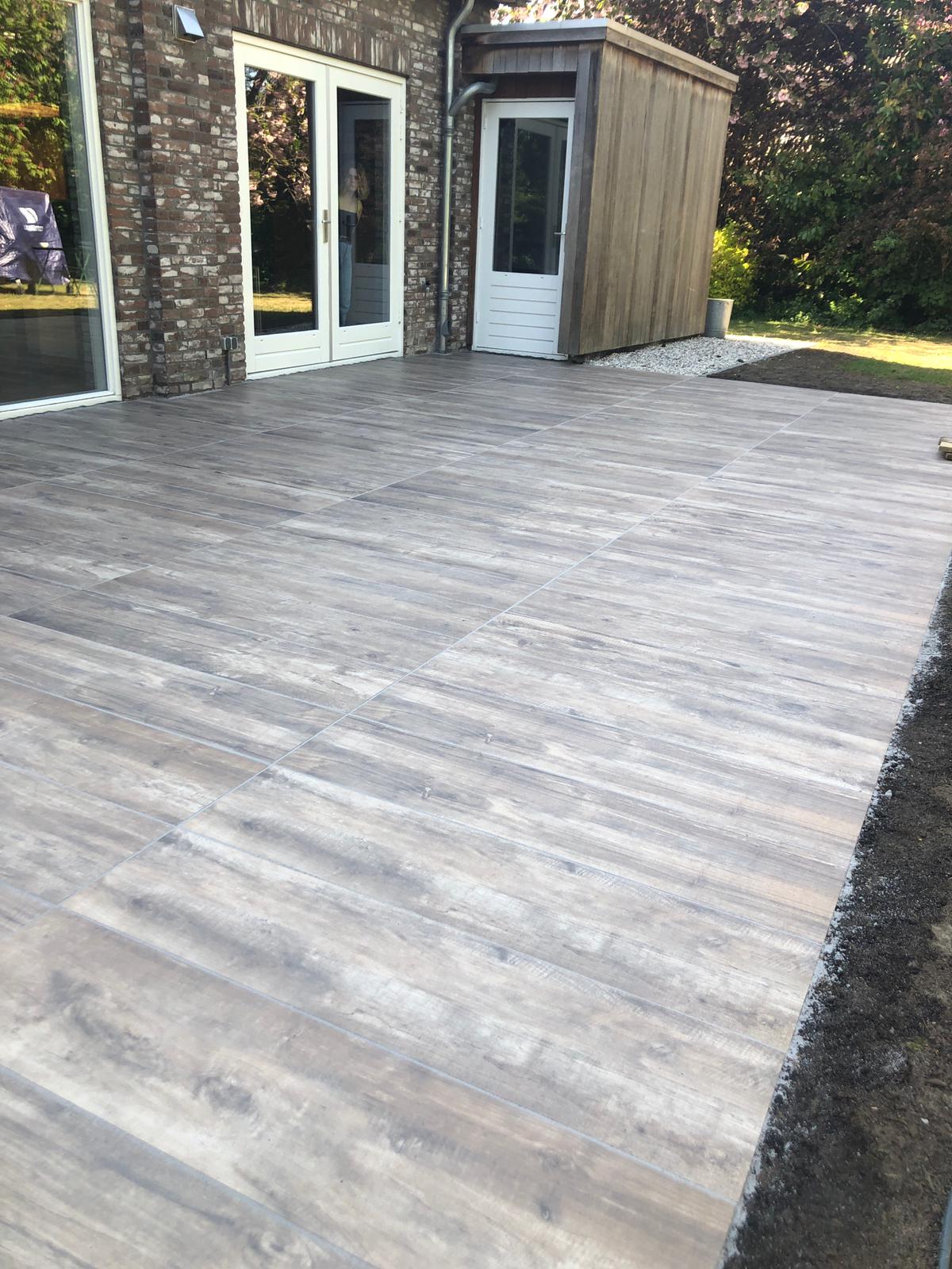 Terras gerealiseerd met GeoCeramica Timber Noce.